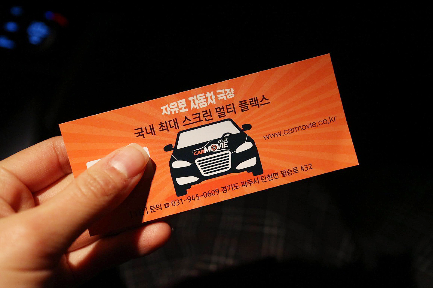 계산을 하고 나면 이렇게 티켓을 주셨어요. 제 손가락으로 가려진 곳에 주파수가 적혀 있어요. 주파수로 차안에서 영화 음향을 들을 수 있어요. 영화마다, 날마다 주파수가 달라진다고 하더라구요. 차량오디오가 안될 시에는 매점에서 라디오를 대여해 준다고 하며, 대여비는 3,000원이예요.
