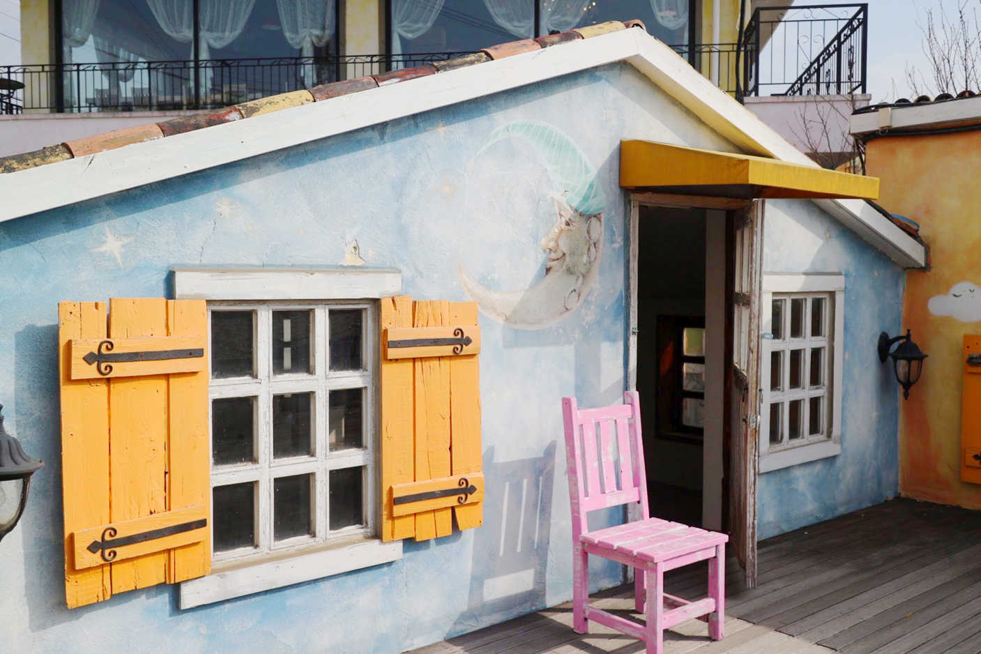 대부분의 건물이 매장으로 이뤄져 있었어요. 안에 들어가면 아기자기한 소품부터 실용적인 제품까지 다양하게 팔고 있었어요. 매장 이외에도 사진 찍기 위해 만들어 놓은 포토존 건물과 조형물들이 있었어요. 건물 색이 굉장히 예뻐서 어디서든 사진을 찍어도 유럽 느낌이 나더라구요.