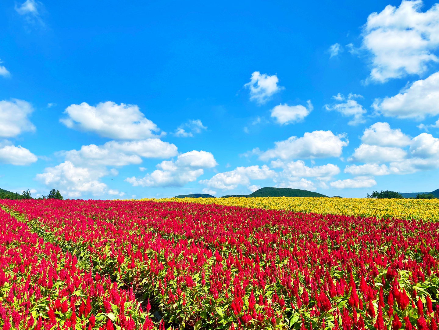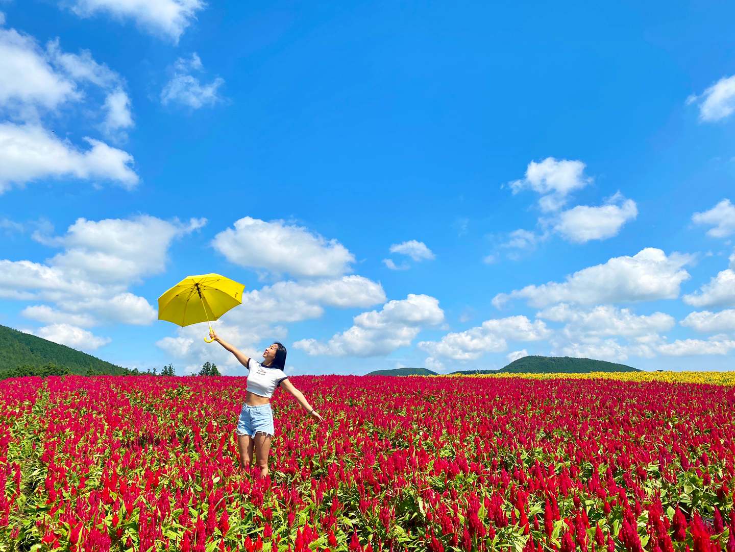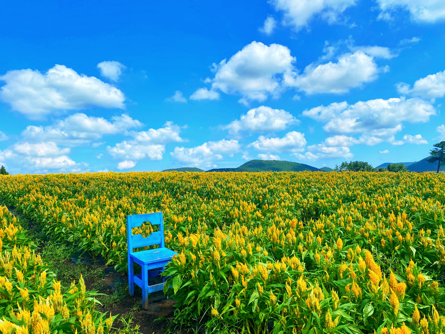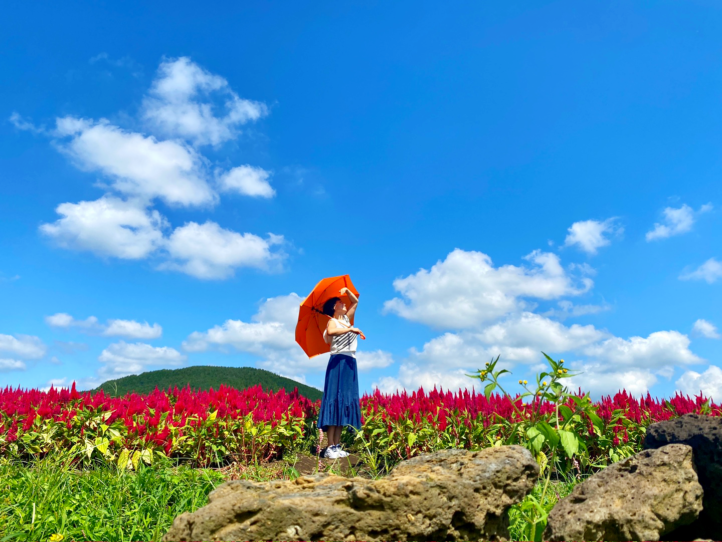 제주 보롬왓의 9월, 10월 풍경이예요. 빨간색, 노란색 맨드라미가 끝없이 펼쳐져 있었어요. 날씨가 좋을 때 가서 하늘은 파랗고, 구름은 몽실몽실한게 동화의 한 장명 같았어요. 빨간색 맨드라미와 파란색 하늘이 대비되서 더 아름다웠어요. 9,10월 제주 볼거리로 딱이죠?!