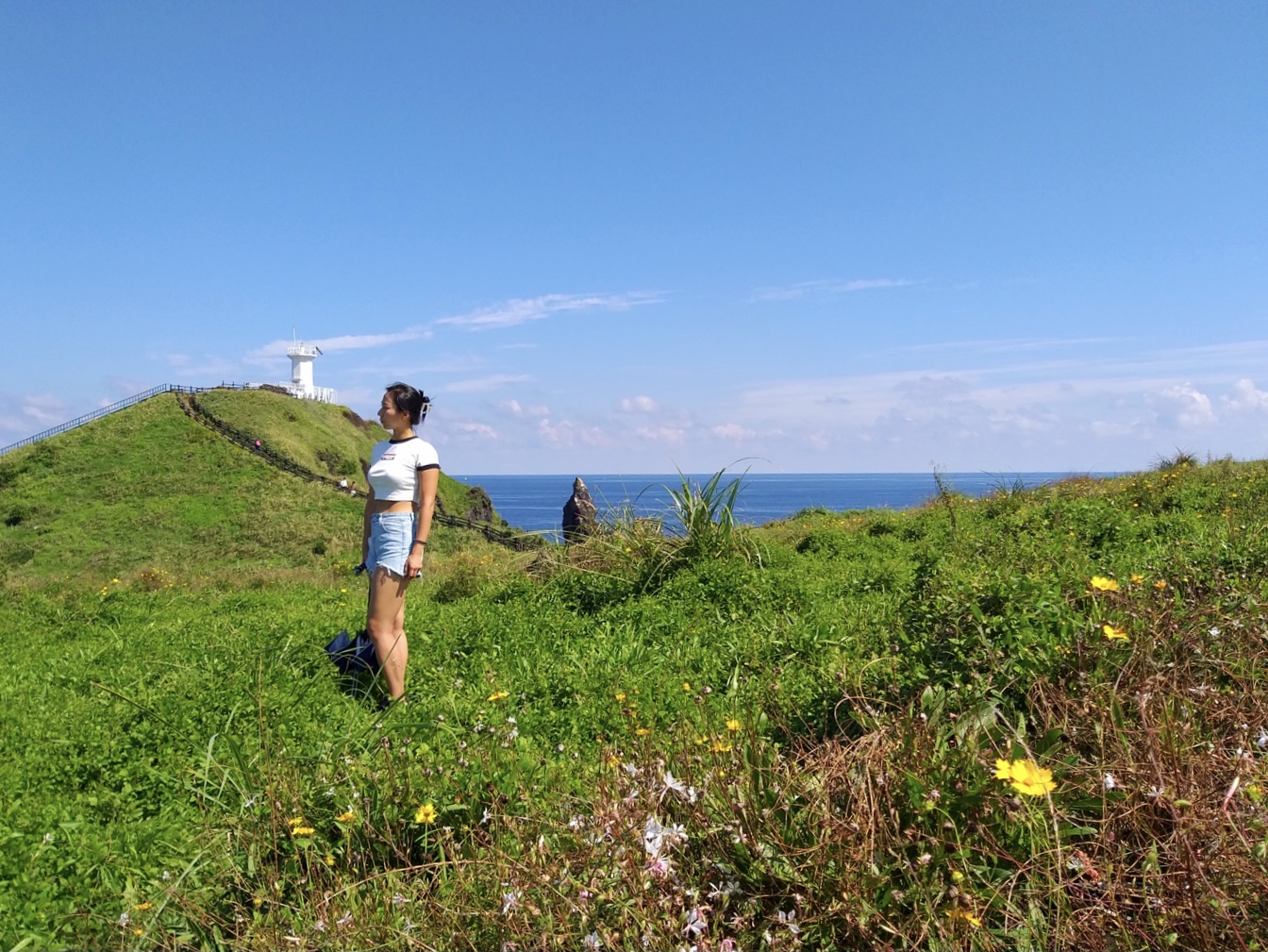 위에 사진처럼 하얀 등대를 볼 수 있는데 이게 바로 방두포등대라고 해요. 등대는 그렇게 높지 않아서 힘들지 않게 올라갈 수 있었어요. 이 방두포등대는 섭지코지 붉은 오름 위 소원을 들어주는 등대라고 해요. 올라가셔서 소원도 빌고 바다도 구경하고 오세요. 하얀 등대과 파란 바다를 배경으로 사진도 찍어봤어요.