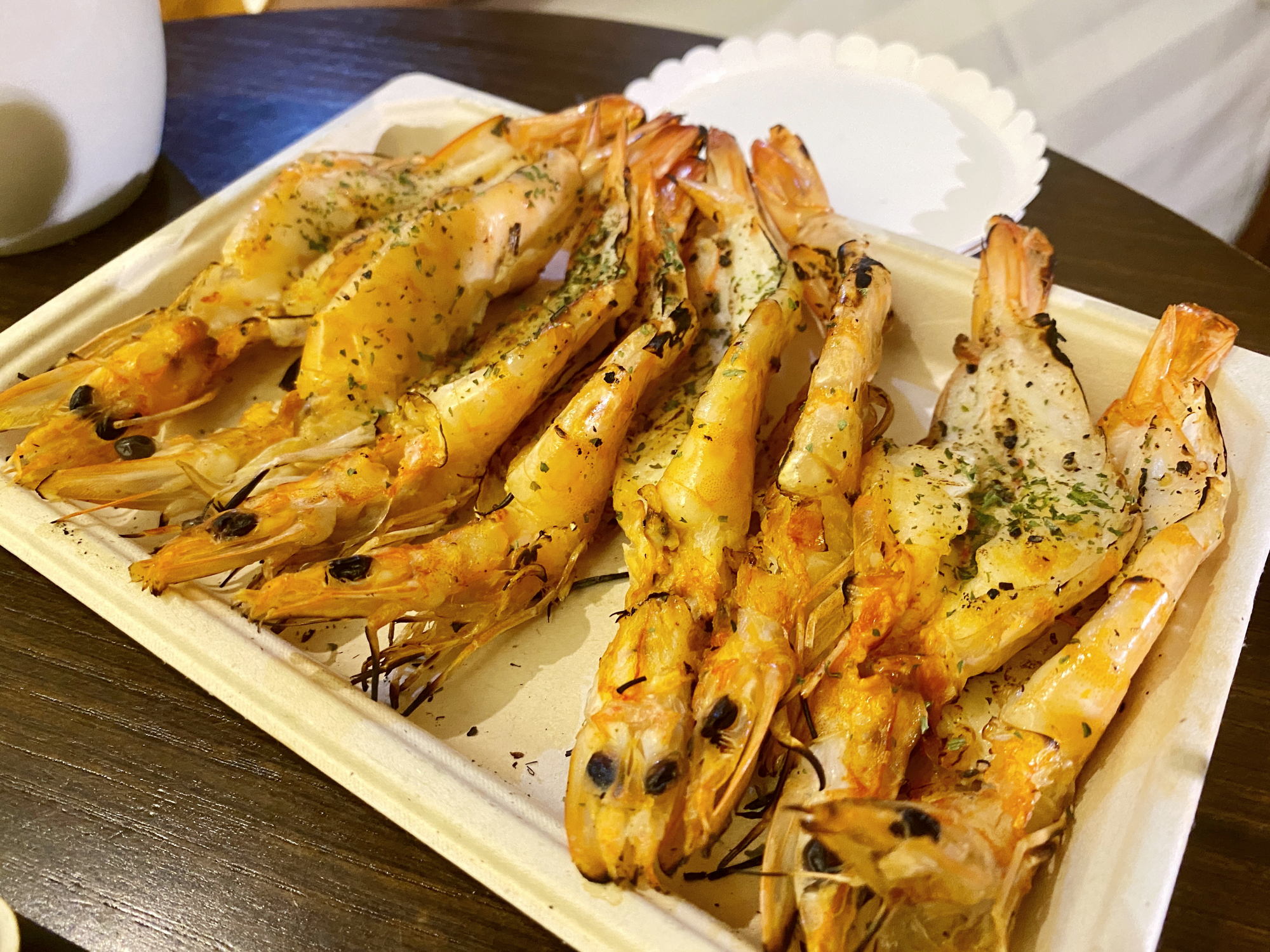 제주동문시장 하면 야시장도 빼 놓을 수 없죠! 노래도 크게 틀어져 있고 사람들도 굉장히 많았어요. 흑돼지, 랍스터를 파는 가게 앞에 사람이 굉장히 많았어요. 저희는 줄 서서 구매하는 성격이 아니여서 사람이 적었던 새우구이를 구매해서 갔어요. 코로나 때문에 제가 방문했을 때에는 21시까지 운영했었고, 코로나 단계에 따라 달라지니 방문 전에 확인해주세요~