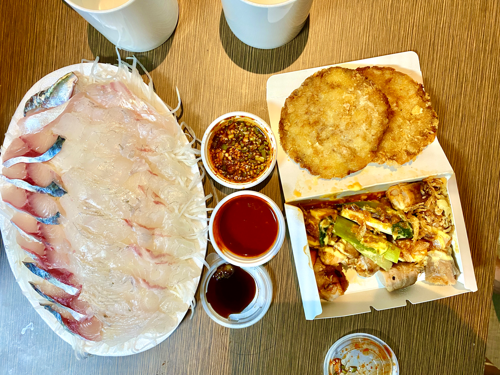 제주동문시장에는 포장 음식이 많아서 구매해서 숙소에서 드시면 좋아요. 고등어회가 포함된 모듬회, 흑돼지 고로케, 딱새우 흑돼지말이, 새우구이를 먹었는데 개인적으로 딱새우 흑돼지말이 추천합니다! 새우의 탱글함과 돼지고기의 쫄깃함이 만나 식감이 너무 좋고 소스도 굉장히 맛있었어요. 버섯이랑 대파도 들어 있어서 향긋하니 맛있더라구요. 새우구이는 야시장에서 구매했는데 새로 구워주신 건 맛있었지만 미리 구워져 있던 새우는 딱딱하고 별로 였어요. 새걸로 달라고 했는데 똑같다면서 그냥 주시더라구요. 고등어 회는 올레수산에서 구매했고 처음 먹어봤는데 전혀 비리지 않고 고소하니 맛있었어요.