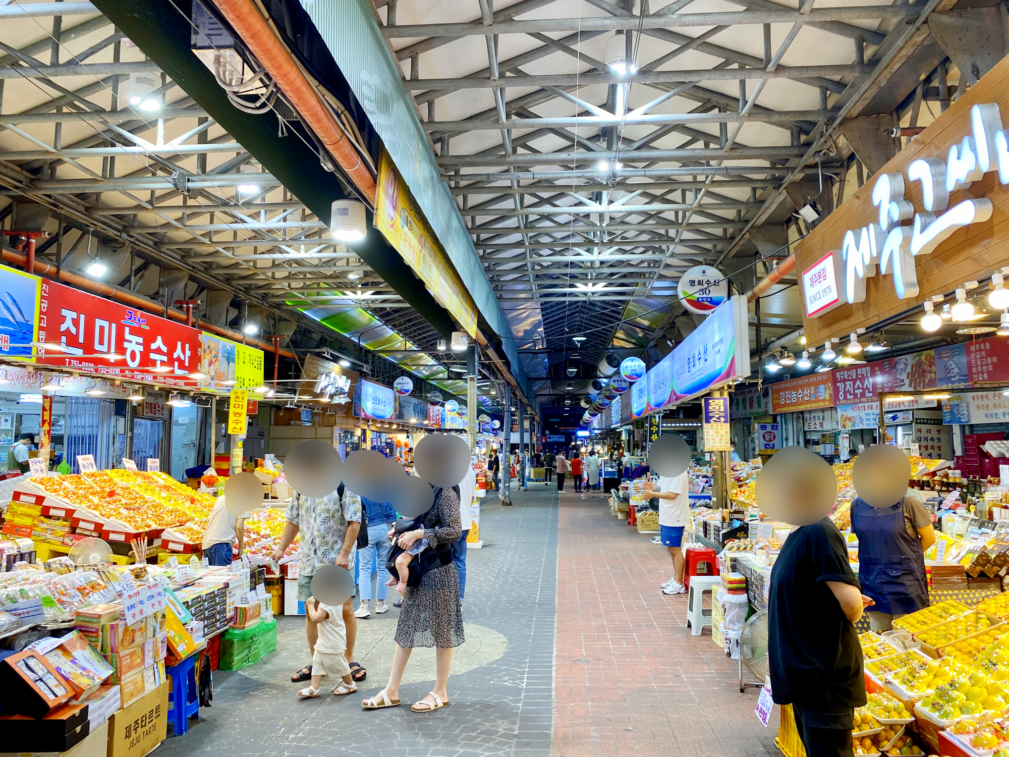 제주동문시장은 골목도 많고 상점들도 굉장히 많았어요. 평일에 방문했는데도 사람이 생각보다 많아서 놀랐어요. 시장을 돌아다니다보면 기념품샵들이 많아서 여행 마지막날, 비행기 타기 전에 방문하는 게 좋을 것 같아요. 저는 제주한라봉주스, 감귤맛&녹차맛 허쉬샌드과자, 제주 관련 캐릭터가 그려진 컵을 구매했어요. 소품샵 마다 “수공예품이다, 우리 가게에서만 판다”라고 하시는데 대부분 가게에 있는 것들이 비슷하더라구요. 제주공항보다는 훨~~씬 저렴하기 때문에 구매할 의향이 있으시면 시장에서 구매하시는 게 좋을 것 같아요.