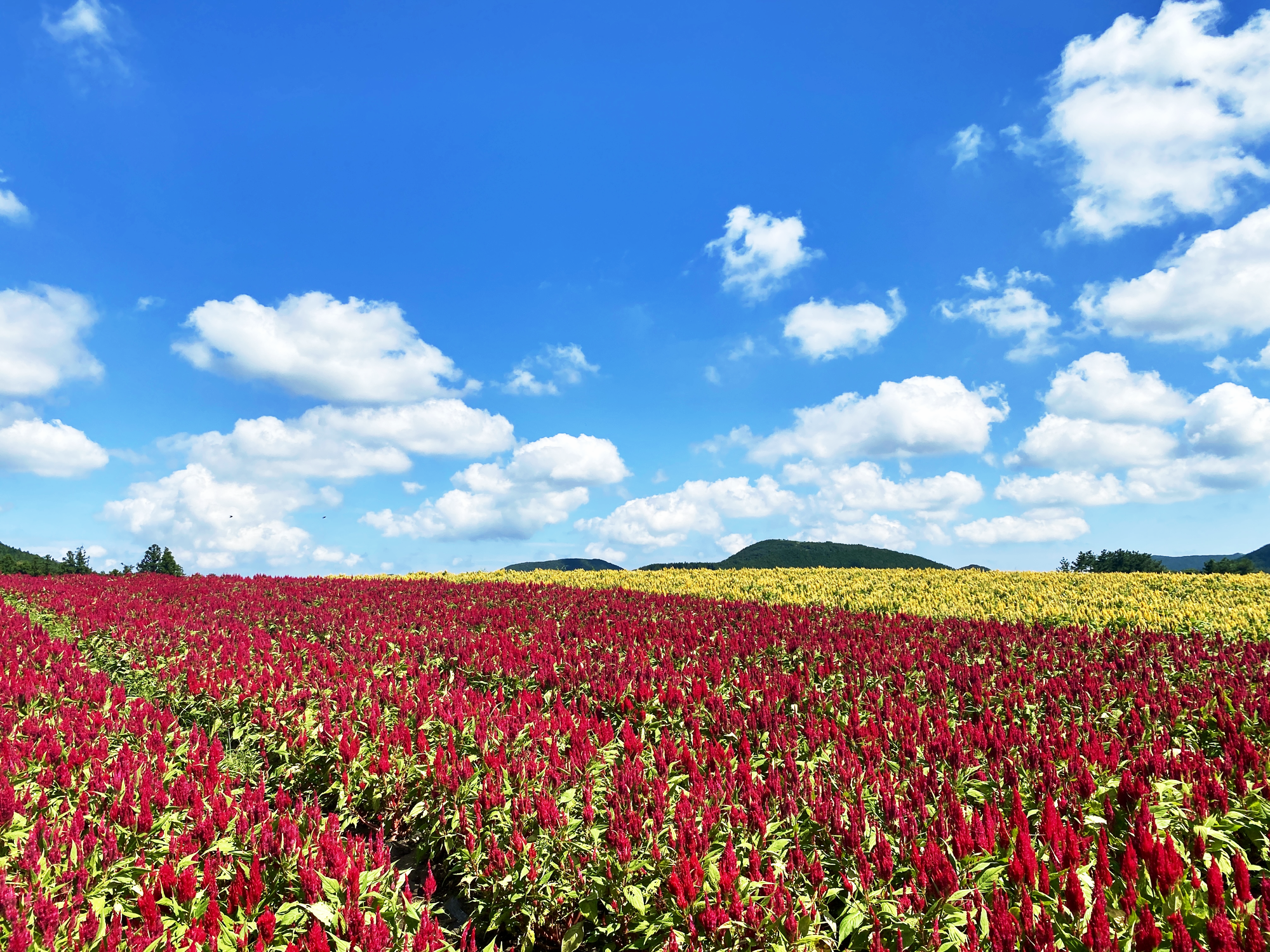 저는 9월달에 방문해서 빨간색, 노란색 맨드라미를 볼 수 있었어요. 봄에는 유채꽃과 튤립, 여름에는 수국, 가을에는 메밀, 맨드라미, 핑크뮬리를 볼 수 있다고 해요. 추운 한겨울만 빼고는 언제 와도 꽃 구경을 할 수 있어서 계절 상관없이 예쁜 인생샷을 남길 수 있을 것 같아요. 보롬왓에는 예쁜 사진을 남길 수 있도록 여러가지 색의 우산도 무료로 대여해 줬어요. 햇빛 가리개로 사용할 겸, 사진 소품으로 사용할 겸 꼭 이용하셨으면 좋겠네요.