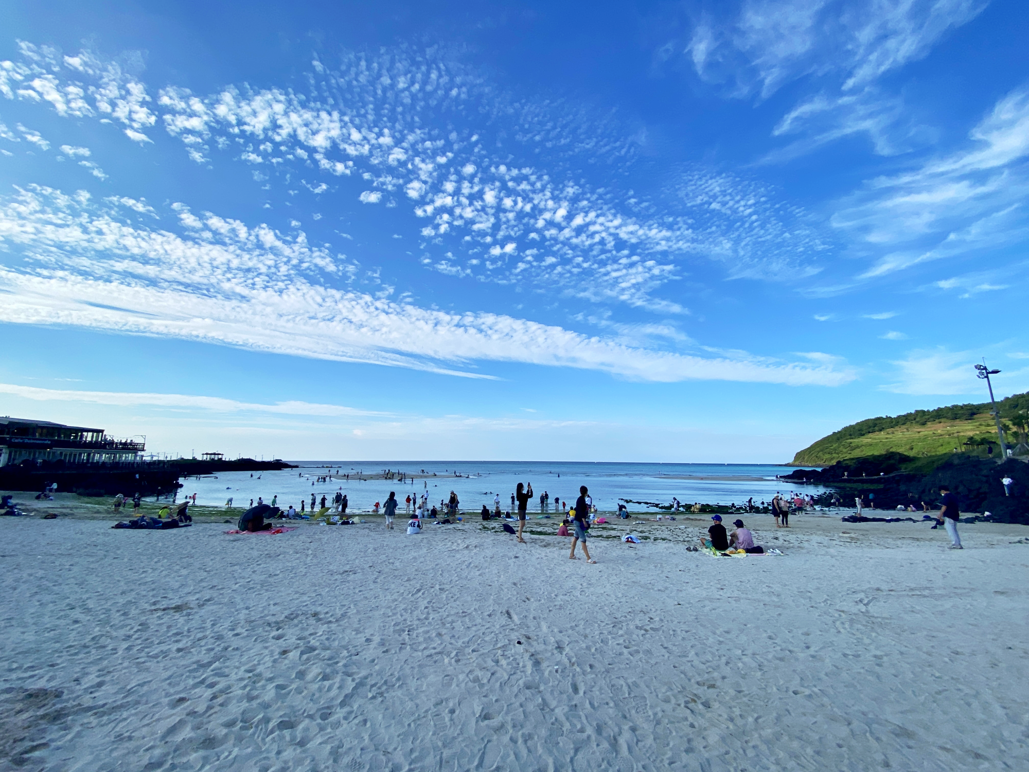 마지막으로 방문한 곳은 함덕해수욕장, 서우봉 이었어요. 다른 분들은 물에 안 들어가셨지만 물을 좋아하는 저는 여기서 수영을 했고, 엄마는 바다물에 발을 담그셨어요. 함덕해수욕장은 처음이었는데 물이 얕아서 아이들이 놀기에 너무 좋은 곳이었어요. 저희는 숙소를 함덕해수욕장 근처 서우봉 비치 호텔로 잡아서 하차를 이곳에서 했어요. 함덕해수욕장에서 제주시 방향으로 가는 길에 숙소가 있어서 가이드님께서 숙소 앞까지 태워주셨어요.