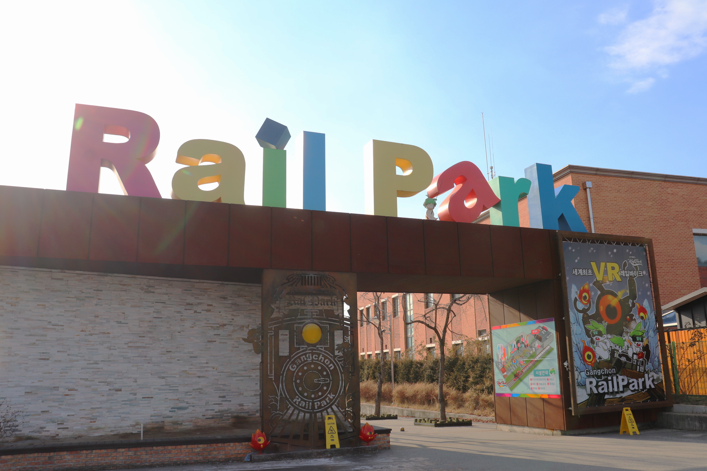 김유정역에서 나와 레일바이크를 타는 장소인 ‘레일파크’로 이동했어요. 레일파크에 들어가기 전에는 넓은 야외 주차장이 있었어요. 레일파크 안으로 들어가니 짚와이어를 탈 수 있는 누리나비가 가장 처음 보였고, 음료와 간단한 음식을 사 먹을 수 있는 매점과 카페가 있었어요. 김유정역과 김유정문학촌이 있는 곳이여서 그런지 레일파크를 책으로 꾸며 놓은 모습이 인상 깊었어요.