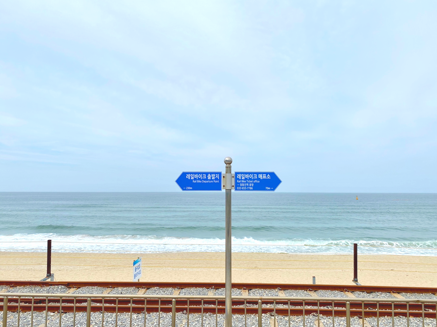 기차에서 내리면 바로 바다가 보였고, 레일바이크 매표소로 가는 화살표가 있었어요. 레일바이크 타는 곳과 매표소가 반대방향이기 때문에 잘 보시고 가세요. 저희는 기차에서 내려서 레일바이크 매표소로 이동했어요. 레일바이크 매표소는 정동진 기차역 밖에 위치하고 있어요.