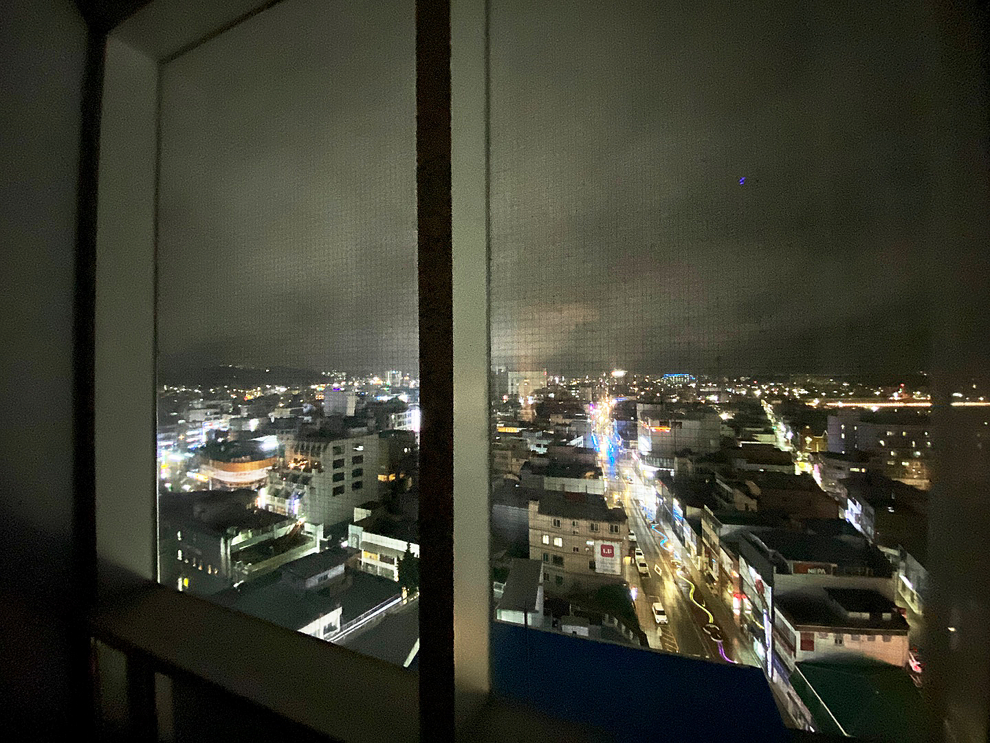 저녁을 먹고 방에 들어오니 창밖으로 멋진 야경이 펼쳐져 있었어요. 서울 보다는 조명이 약했지만 방에서 이렇게 뻥 뚫린 야경을 볼 수 있어서 좋았어요. 높은 층을 이용해서 이런 뷰를 볼 수 있던 것 같아요.